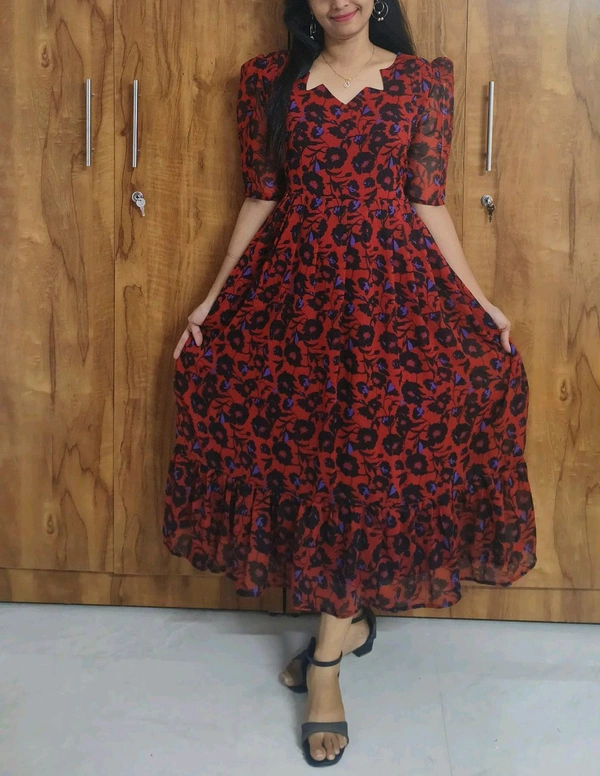 Floral Red- Georgette Feeding Kurtii