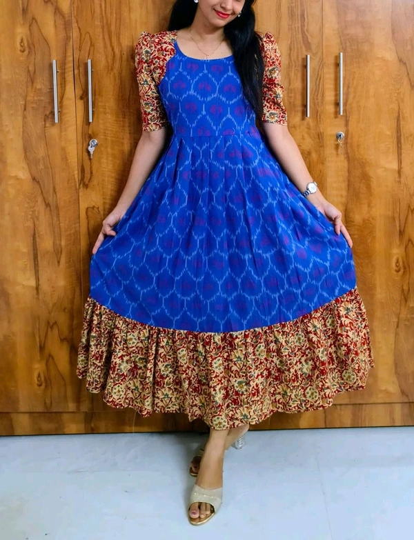 Experience the beauty of Pure Ikkat and handprint Kalamkari in this stunning feeding kurti. Features include: